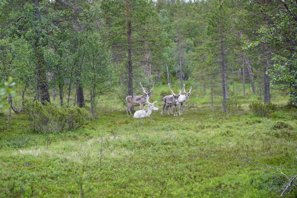 Endlich wird der Verkehr weniger, die Route führt uns durch Nadel- und Birkenwälder, ab und zu passieren wir einen See. Der erste Elch läuft uns vor’s Kaschdl, es wird nicht der letzte sein, auch Rudolph und seine Rentier-Kumpels weiden am Straßenrand.