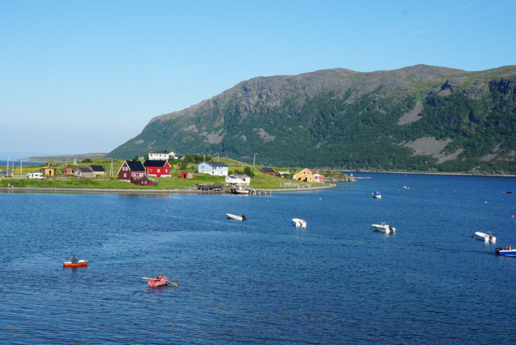 Und das soll es mit Finnland auch schon gewesen sein, uns zieht es zum nördlichsten Punkt Europas. Kaum sind wir in Norwegen angekommen, bessert sich nicht nur das Wetter, auch die Landschaft verändert sich. Wir lassen die Tundra hinter uns und fahren entlang des blau glitzernden Porsanger-Fjords.