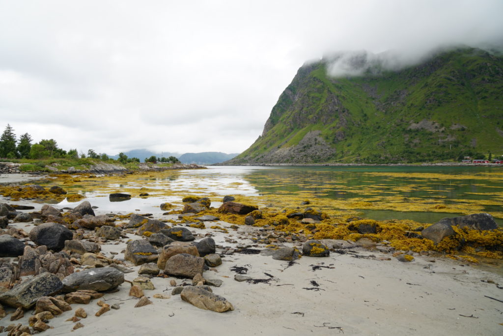 Ein absolutes Must in Nordnorwegen sind die Lofoten und so verwundert es auch nicht, dass die von gezackten Felsen dominierten Inseln von Touristen überschwemmt werden. Also schwimmen wir brav im Strom mit und gönnen uns einen faulen Tag am Strand. Nachdem wir den Kampf um einen Parkplatz für uns entschieden haben, genießen wir den feinen, weißen Sand unter unseren Füßen – in unseren Händen spannende Bücher, vor uns das Meer, das kommt und geht, und hinter uns hohe Felswände, die von zahlreichen Kletterern bezwungen werden.