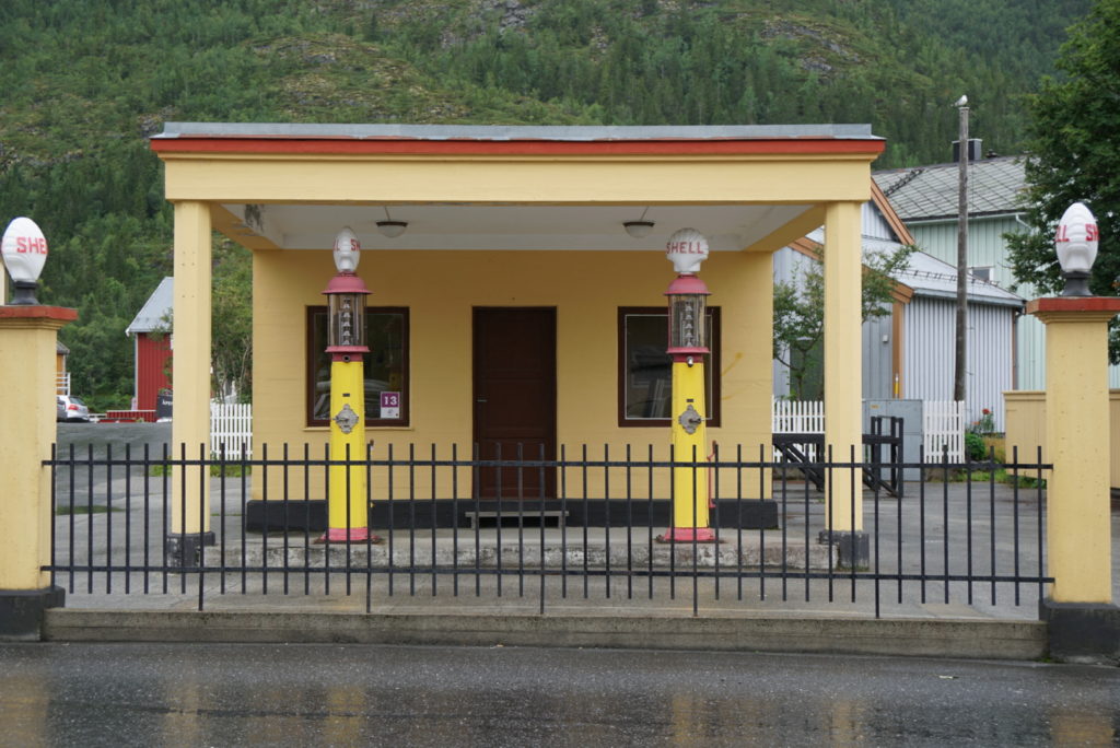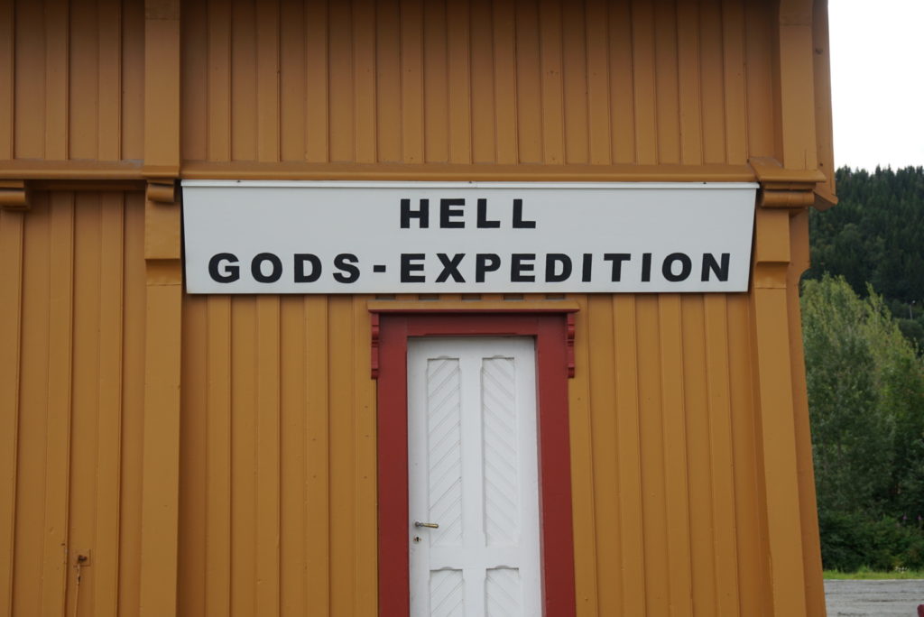 Auf dem Weg nach Trondheim begegnet uns allerlei Schönes: Eine Tankstelle aus den Dreißigern (leider nicht mehr in Betrieb), Norwegens einzige überdachte Brücke oder der schnuckelige Bahnhof von Hell mit dem für Nicht-Norweger lustigen Schild der Gepäckausgabe.