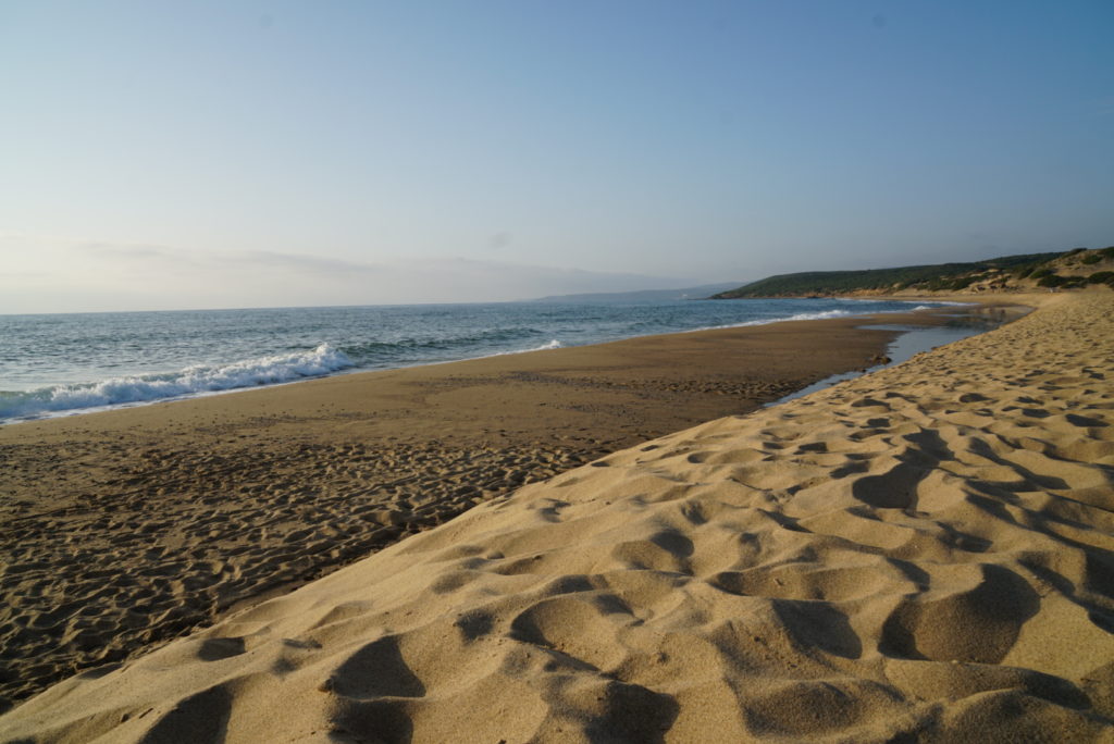 So tauschen wir diesen wildromantischen Platz gegen einen anderen in Piscinas ein. Hier reichen enorme Wanderdünen bis zum türkis schimmernden Wasser – und sorgen so auch für schöne Fotomotive. Der Vergleich mit der Düne von Pilat drängt sich auf (allerdings gibt es hier keine Treppe und kaum Menschen). Die Nächte verbringen wir derweil geschützt und in absoluter Stille unter Eukalyptusbäumen.
