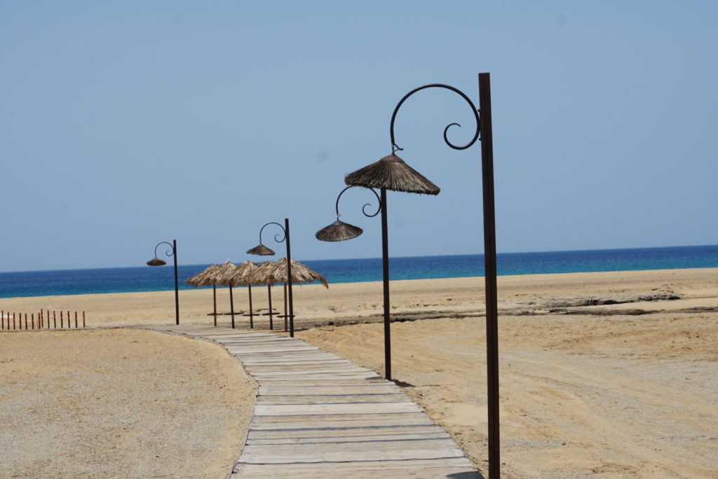 Aber dort hält es uns nicht lange, wir fahren lieber zum „Reiskornstrand“. In Is Arutas hat der Sand die Größe von Reiskörnern. Das scheint so außergewöhnlich zu sein, dass die Mitnahme des Feinkieses unter strengste Strafe gestellt wurde.