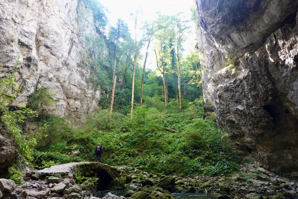 Dann wird es wieder abenteuerlicher – wir wandern durch die Karstschlucht von Rakov Škocjan, die durch den Einsturz der Höhlendecken enstanden ist.